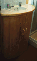 Bathroom under-sink units are, traditionally, rather dull, typically being very box-like in design. However, in small bathrooms, where space is of a premium, a box-like shape takes up too much space. This curved under-sink unit was designed to fit into a small bathroom and while it may not save much physical space, it certainly provides the illusion of being much smaller than it actually is. Furthermore, by building curved doors, the unit becomes a major feature in a small room.