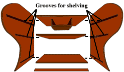 In this example, the grooves were made by using a router, cutting a half inch slot (half inch wide, 3/8 inch deep) for each of the three shelves. However, it is possible to make these slots using either a special groove planer, or by using a chisel. However, the cost of a cheap router (mine cost $25 in a garage sale) is well worth the expense as it saves a lot of time, and produces an accurate finish.