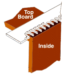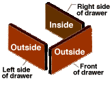Arrange the three pieces of the drawer or box as shown in the first diagram and mark the inside and outside of each piece. In addition, mark the ends of each piece as it is imperative that when cutting the dovetails the correct two ends are cut at one go.