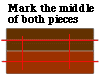 Take two pieces of equal length wood. Decide now which side will be the top and which the bottom for each piece and mark the top side of each so that you do not forget.