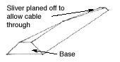 Once you have cut all four sides, roughly dry-fit them together (ie without glue). You will notice that there is no gap at the top through which the wire can fit. To resolve this problem, plane or sand off a 1/8" sliver from the inside of each side near the top (see diagram). The result should be a small hole through which the wire can be threaded later. Now glue all four sides together and clamp. The best way to clamp this pillar is to use electrical tape tightly bound around the pillar at the top, bottom and in the middle.